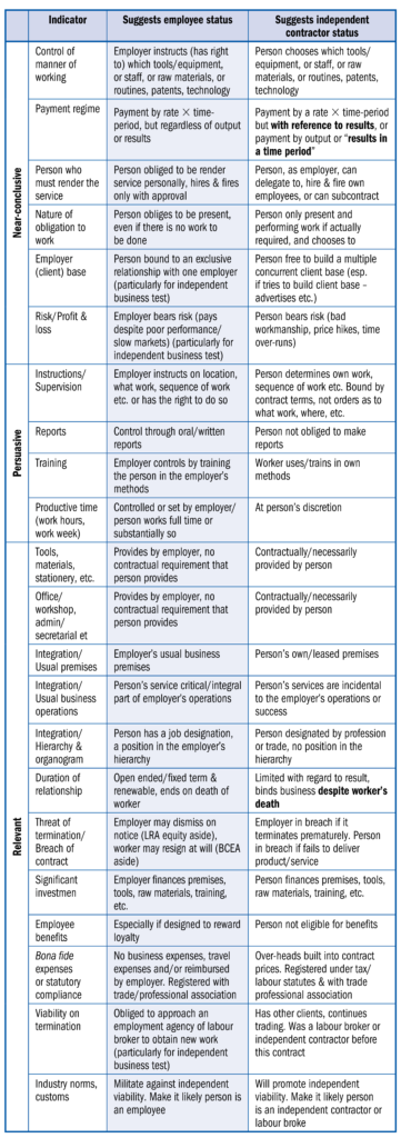 Pay As You Earn (PAYE)- Common law dominant impression test grid
