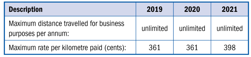 This alternative is not available if other compensation in the form of a travel allowance or reimbursement (other than for parking or toll fees) is received from the employer in respect of the vehicle. In such an instance the reimburse travel allowance will be taxable and expenditure for business travel could be claimed in the same manner as with a normal travel allowance.